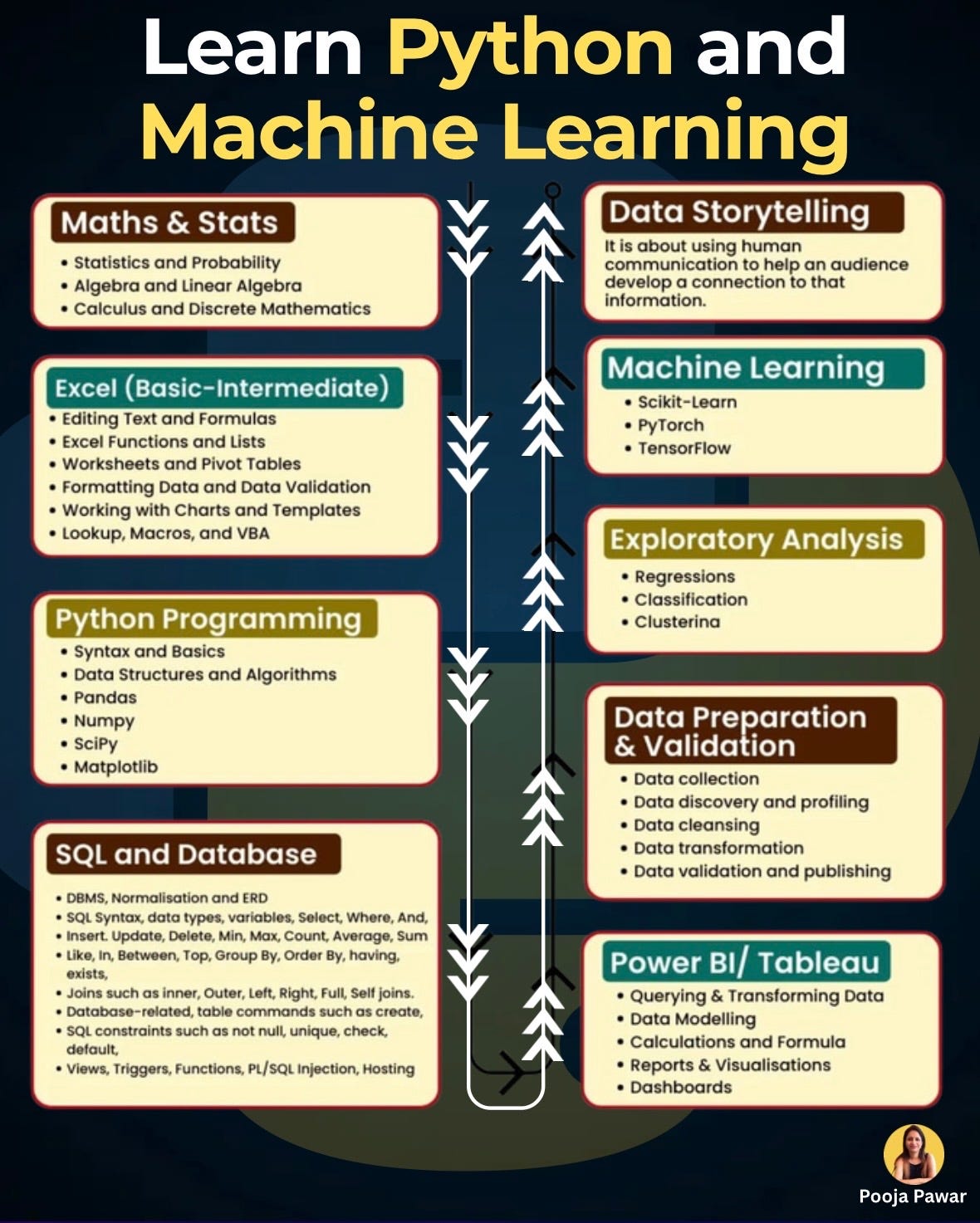Learning Python and Machine Learning isn’t just about algorithms or dashboards. It’s about connecting math, data, tools, and human communication into one ecosystem. The journey is iterative — you’ll bounce between SQL queries, Python scripts, BI dashboards, and ML models before finally turning numbers into stories that drive decisions.