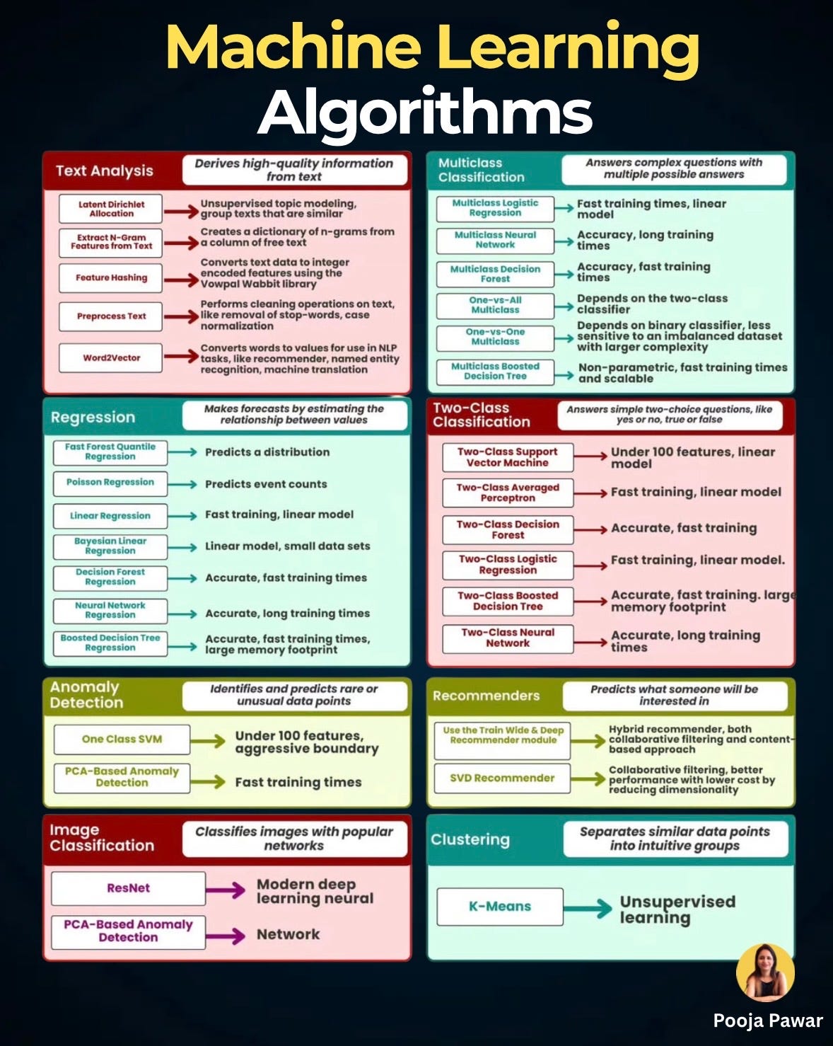 Machine learning (ML) algorithms often sound intimidating, but once broken down into their categories and use cases, they start to look much more practical. Let’s walk through some of the most important ML algorithms—what they do, how they work, and where you’ll see them in action today.